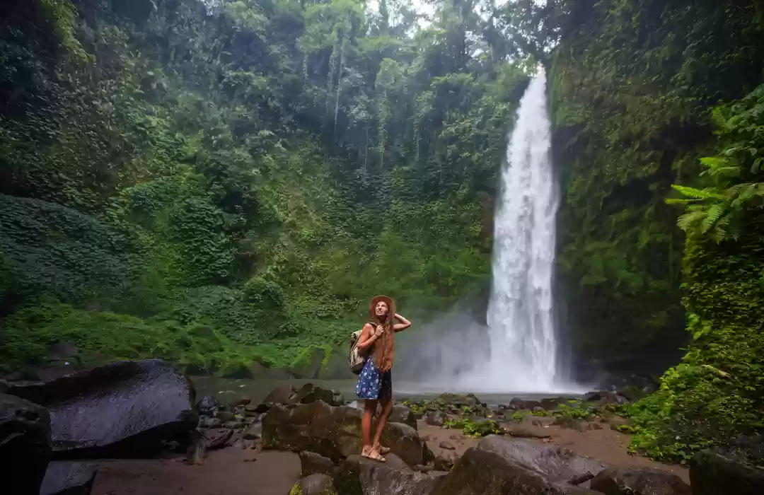 Explore Gitgit Waterfall, one of Bali's most iconic waterfalls. Surrounded by lush greenery, it plunges into a clear pool below, offering a refreshing spot to swim and enjoy the natural beauty of the island.